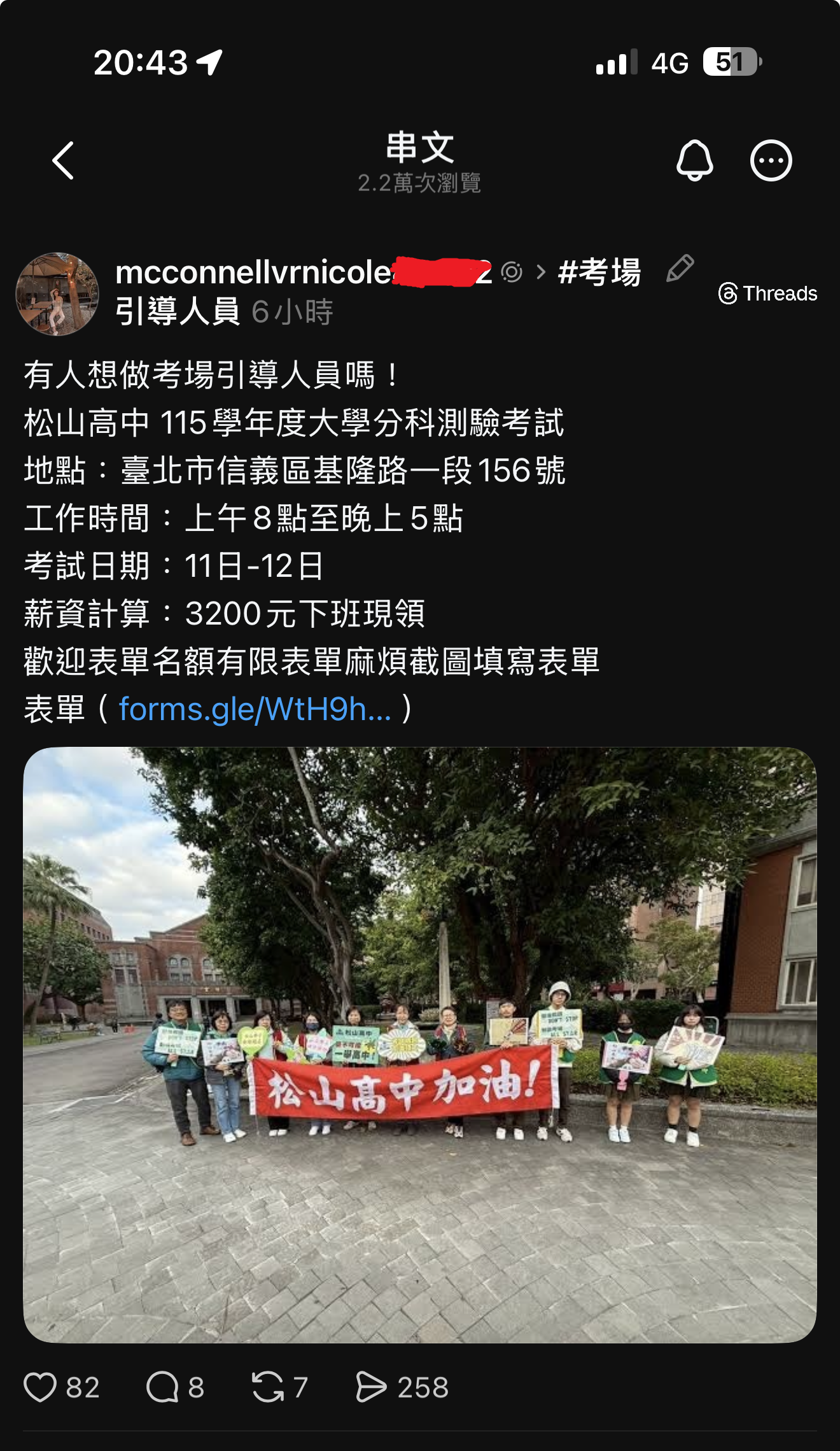 以上為不實資訊,松山高中並無招募相關引導人員,請民眾小心、留意個人資訊安全。
