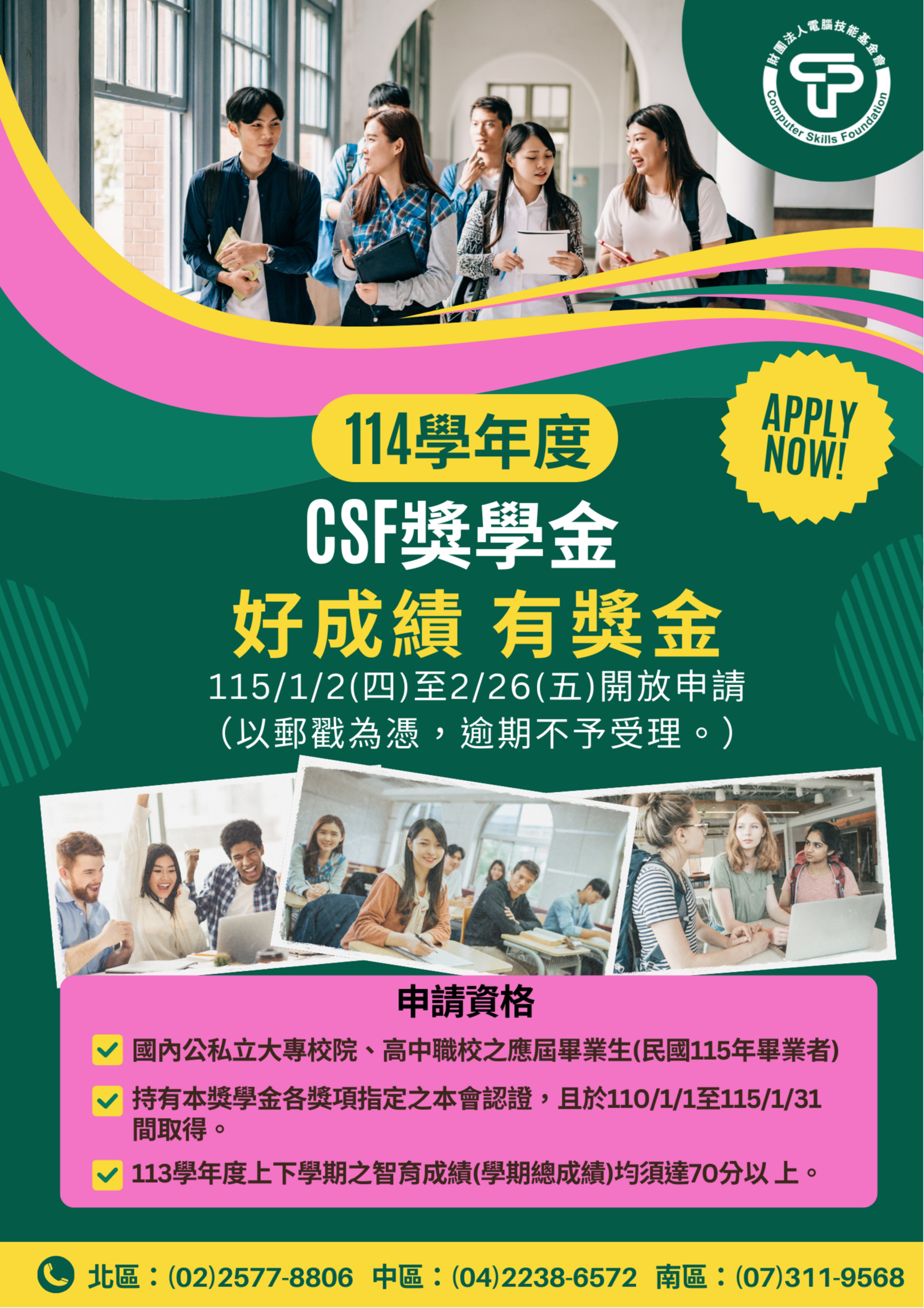 各獎項將於115年4月10日(五)於網頁公告。得獎人員由財團法人中華民國電腦技能基金會寄發獎學金及獎狀,並建請各推薦單位於公開場合頒發獎狀及張貼得獎海報表揚。