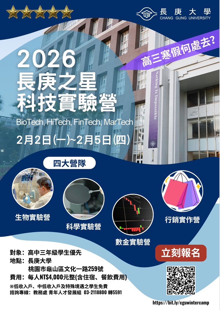 ✍️敬請盡速掃QRCode報名系統,歡迎師長推薦優秀學生踴躍報名!💁♀️長庚大學歡迎您!💁♂️聯絡電話:03-2118800#5591