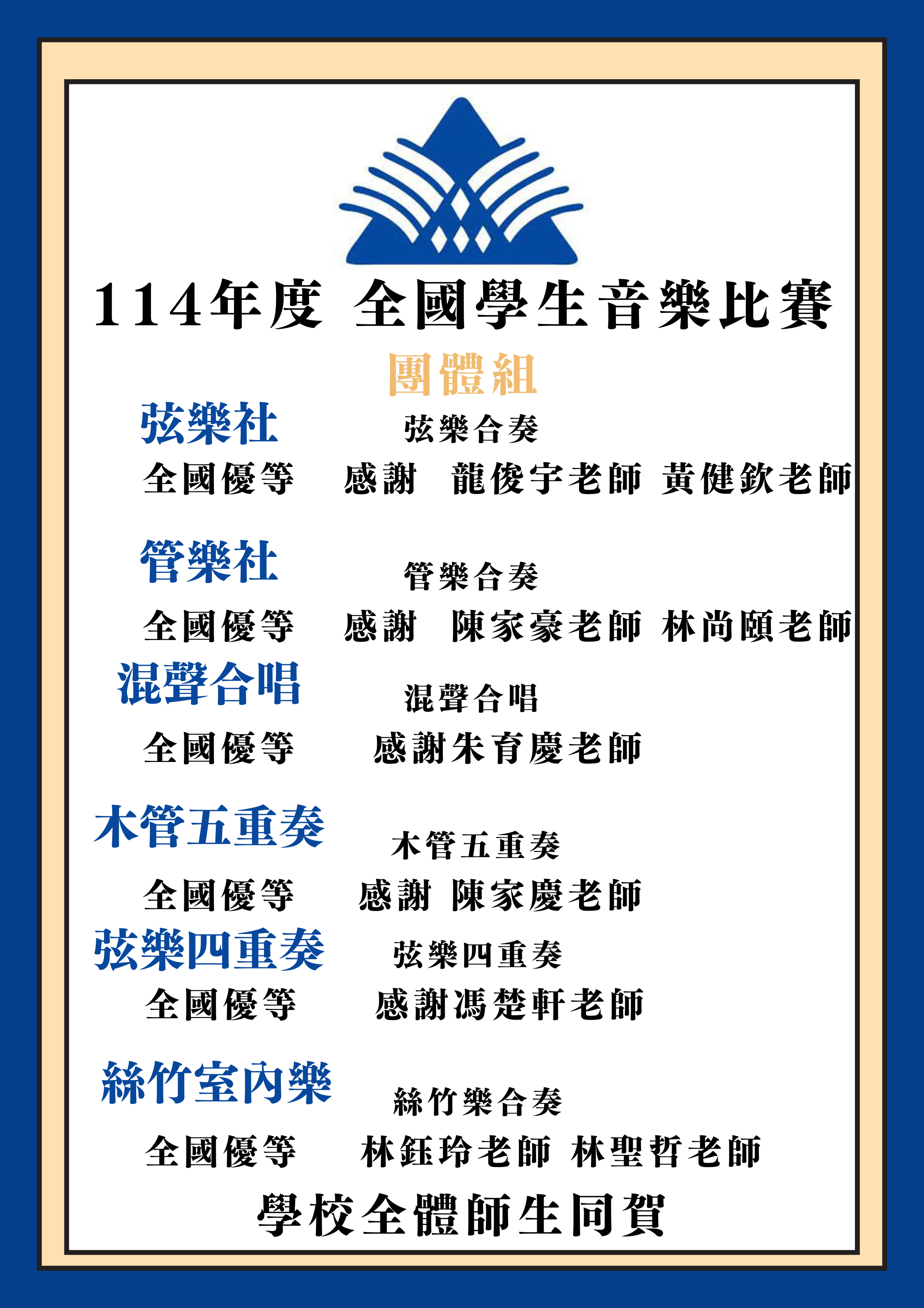 賀本校社團參加114學年度全國學生音樂比賽榮獲佳績